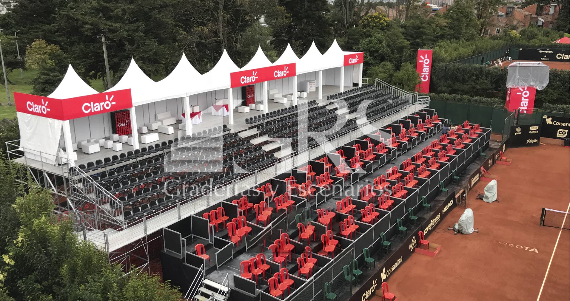 Graderías y Escenarios GRS cuenta con un amplio portafolio de graderías generales o VIP para alquiler o venta, ideales para clientes que necesitan tribunas portátiles con acabado profesional, en tamaños estándar o hecho a medida para cumplir con los requisitos de uso, con sentaderos en aluminio o silletería tipo estadio, con o sin techo, perfectas para adaptarse a cualquier tipo de terreno gracias a nuestros tornillos niveladores; por lo que somos reconocidos a nivel nacional al mantener los estándares de calidad, durabilidad, seguridad, versatilidad y resistencia, dentro de eventos de caracteres masivos, deportivos, culturales, sociales, populares y/o privados. ¡NO BUSQUES MÁS!